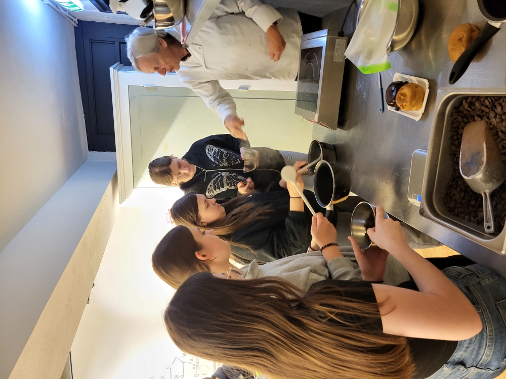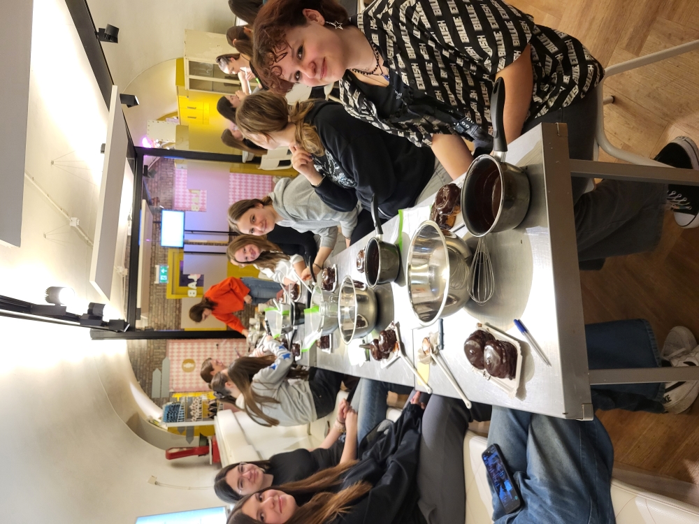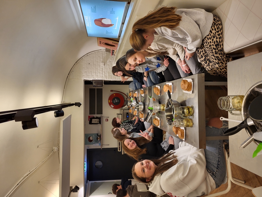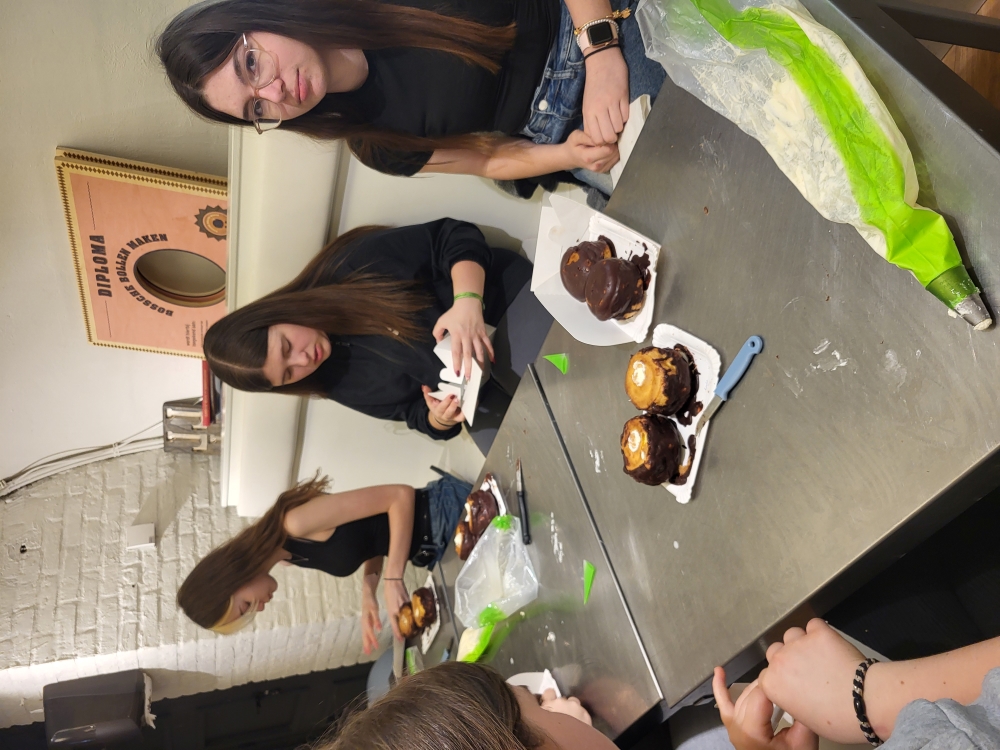 Ankunft in Vught – Ein spannender erster Tag in den Niederlanden Am Dienstag, den 1. April 2025, begann für unsere deutsche Erasmus+ Schülergruppe das Austauschabenteuer in Vught, Niederlande. Nach einer kurzweiligen Anreise wurden wir herzlich an unserer niederländischen Partnerschule empfangen. Die Gastfreundschaft zeigte sich direkt beim Begrüßungsbuffet, das mit typisch niederländischen Snacks wie Stroopwafeln, Bitterballen und Poffertjes reich gedeckt war. Gestärkt fuhren wir weiter nach ’s-Hertogenbosch, besser bekannt als Den Bosch. Dort erwartete uns ein spannender Backkurs, bei dem wir die berühmten "Bosse Bol" – mit Sahne gefüllte und mit Schokolade überzogene Windbeutel – selbst herstellten. Der süße Duft und das anschließende Probieren unserer Kreationen machten diese Erfahrung unvergesslich. Nach der süßen Stärkung ging es auf Erkundungstour durch die historische Innenstadt von Den Bosch. Die malerischen Grachten, die beeindruckende St.-Johannes-Kathedrale und die belebten Plätze hinterließen einen bleibenden Eindruck. Einige von uns nutzten die Gelegenheit, in kleinen Cafés niederländische Spezialitäten zu probieren oder Souvenirs zu kaufen. Am Abend kehrten wir in unsere Gastfamilien zurück, wo wir gemeinsam zu Abend aßen und den ersten Tag in den Niederlanden ausklingen ließen. Wir sind gespannt auf die kommenden Erlebnisse und freuen uns auf die nächsten Tage dieses Austauschs!