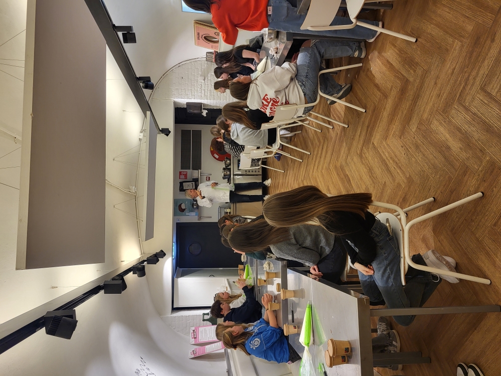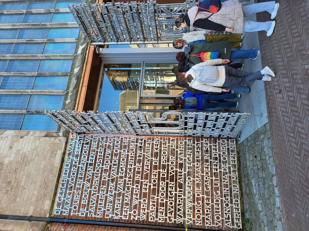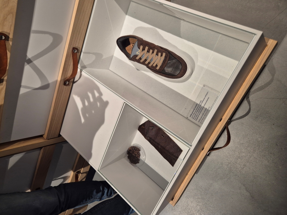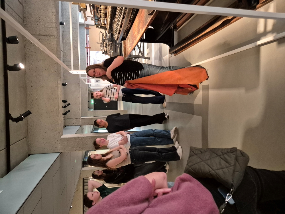 Nach diesem eindrucksvollen Vormittag setzten wir unsere Reise nach Waalwijk fort, eine charmante Stadt in der niederländischen Provinz Nordbrabant. Waalwijk ist bekannt für seine lange Tradition in der Leder- und Schuhherstellung, weshalb sich dort auch das berühmte Schuhmuseum befindet – unser nächstes Ziel. Im Museum erhielten wir zunächst eine spannende Führung zur Schuhherstellung. Passend zu unserem Projektmotto "One Planet One Future" erfuhren wir, wie viel Plastik in unseren Schuhen steckt und welche innovativen Ideen es gibt, um Schuhe nachhaltiger zu produzieren – zum Beispiel aus Kaffee! Es war beeindruckend zu sehen, wie sehr sich die Schuhindustrie mit Umweltfragen auseinandersetzt und nach neuen, umweltfreundlichen Materialien sucht.