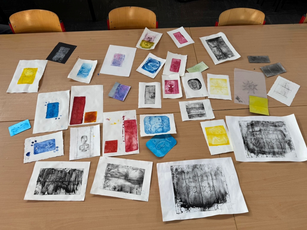 Am 27.02.2026 fand im Rahmen unseres Portugal-Deutschland-Austauschs ein gemeinsamer Projekttag mit unseren portugiesischen Gästen statt. Es war ein abwechslungsreicher und sehr schöner Tag. Zu Beginn haben wir mit Tetra-Paks unsere eigenen Bilder „gedruckt“, also kreativ gestaltet und auf besondere Weise umgesetzt. Dabei konnten wir verschiedene Motive ausprobieren und unserer Fantasie freien Lauf lassen. Es war spannend zu sehen, wie unterschiedlich die Ergebnisse am Ende aussahen.