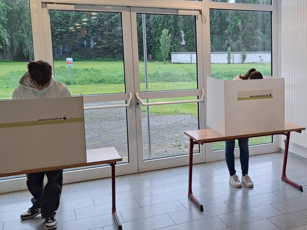 Organisiert von der Klasse 8b fand alles wie bei der echten Wahl statt: Wahlbenachrichtigungen wurden verteilt, Wahlkabinen aufgebaut und Wahlhelfer (auch gestellt von der Klasse 8b) benannt. Diese sorgten für einen reibungslosen Wahlablauf.