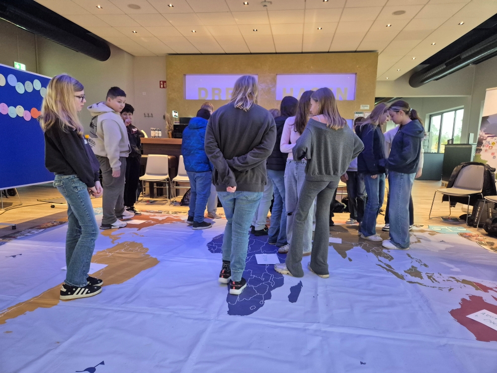 Zu Beginn des ersten Projekttages stand nach einem ersten Warm-Up die Frage im Mittelpunkt, wie ungleich die Weltbevölkerung und das Einkommen verteilt sind. Mithilfe von Süßigkeiten als „Welteinkommenspunkte“ wurde anschaulich deutlich, wie groß die Unterschiede zwischen den einzelnen Kontinenten sind. Diese kreative Methode sorgte für viele Aha-Momente und lebhafte Diskussionen in der Gruppe.